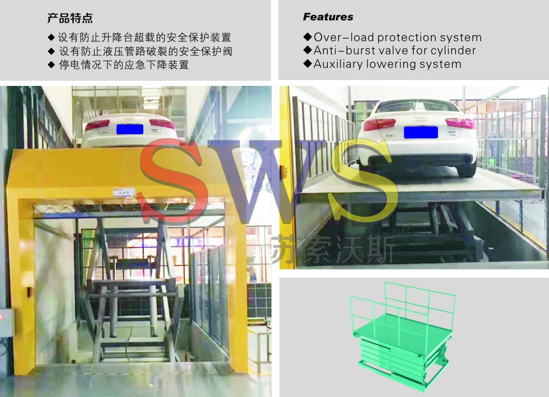 產(chǎn)品描述: 汽車升降平臺(tái)只能用于均勻負(fù)載的汽車輸送場(chǎng)合,不能當(dāng)做普通平臺(tái)或者上下升降輸送人員使用。此款升降平臺(tái)有完整的外置電氣操作控制系統(tǒng),操作便捷。